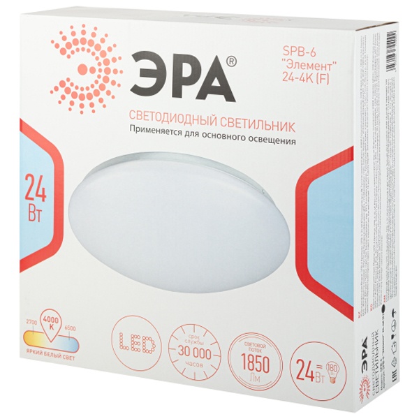 LED Светильник настенно-потолочный ЭРА Классик Элемент 24-4K, 24Ватт 4000K 1850Лм Б0032256