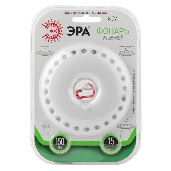 Фонарь K24 Кемпинг NEW 24хLED 3хAA карабин блист. ЭРА Б0032282