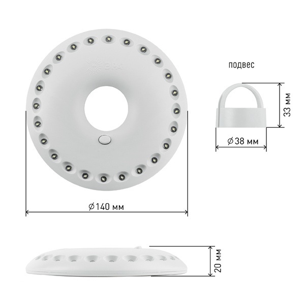 Светодиодный фонарь ЭРА с возможностью подвеса или крпеплением на магниты, работа от батареек, 24 светодиода, диаметр 140 мм Б0032282