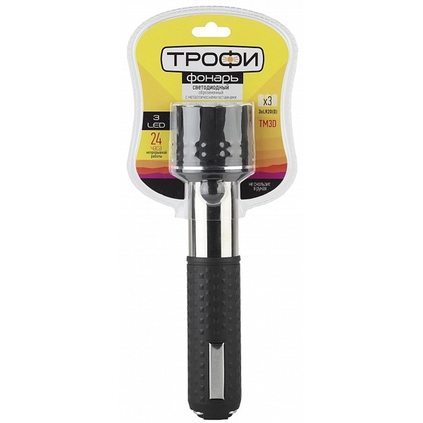 TM3D Фонарь Трофи 3*LED, резина/металл, 3хD, бл+БАТАРЕЙКИ В ПОДАРОК (60/240)