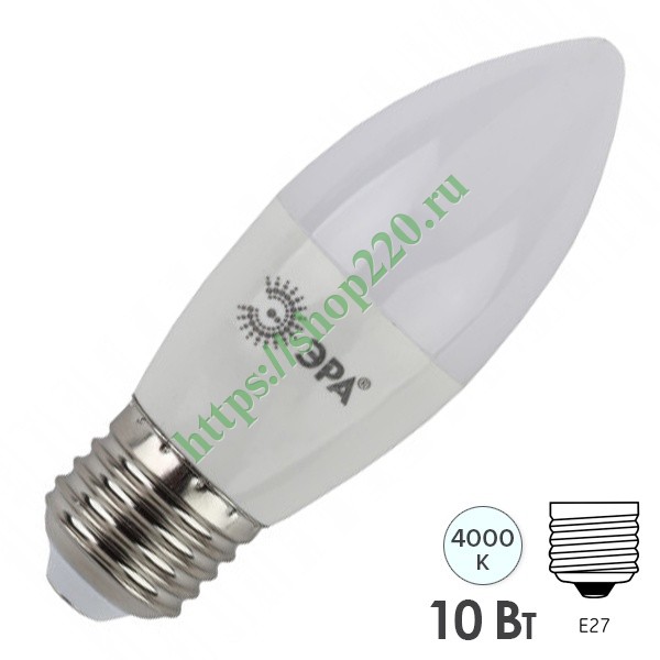 Энергосберегающая LED лампочка свеча мощностью 10 Ватт с цоколем E27 нейтральный белый свет Б0032965