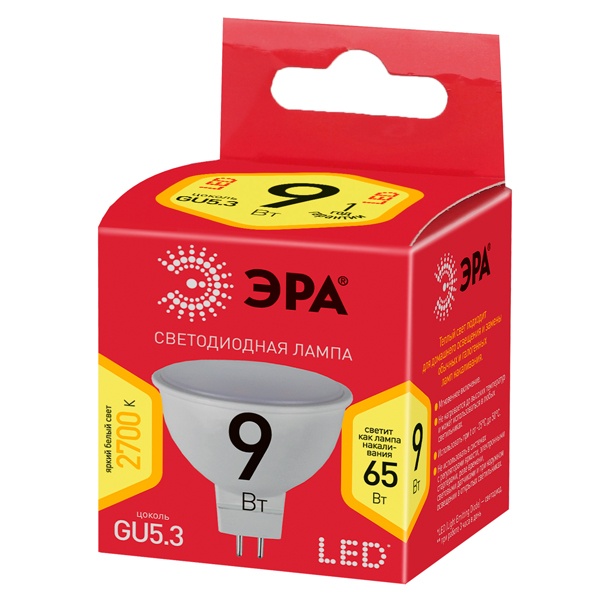 Лампочка светодиодная ЭРА RED LINE ECO LED MR16-9W-827-GU5.3 GU5.3 9Вт софит теплый белый свет