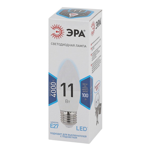 Лампочка светодиодная ЭРА STD LED B35-11W-840-E27 E27 / Е27 11Вт свеча нейтральный белый свет