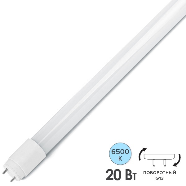 Светодиодная лампочка трубка, мощностью 20 Ватт, с поворотным цоколем G13, холодный дневной свет, двухстороннее подключение, 1200мм Б0033005