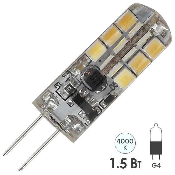 Светодиодная низковольтная капсульная лампочка, мощностью 1,5 Ватта, с цоколем G4, нейтральный белый свет Б0033190