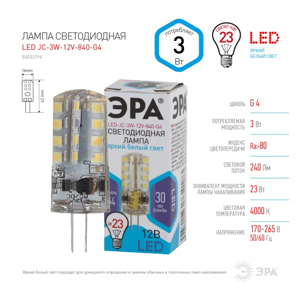 Лампа светодиодная с цоколем G4 является компактным и энергоэффективным источником света. Она предназначена для использования в осветительных приборах, которые поддерживают данную систему цоколя.