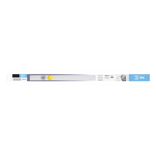 Светодиодный линейный светильник ЭРА с выключателем, мощностью 8 Ватт, холодный дневной свет Б0033304