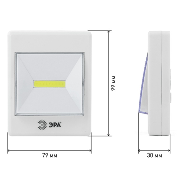ЭРА SB-606 - компактный светодиодный фонарь-пушлайт, работающий по принципу традиционного выключателя. Создан для освещения помещений без стационарного света и для дополнительной подсветки затемнённых мест. Сверхъяркий и суперэкономичный свет chip on board - мультикристалл на плате. Широкий угол светового пучка даёт качественное заливающее освещение. Быстрое закрепление на любой гладкой поверхности, удобное включение и простота в управлении. Чтобы закрепить фонарь на любую ровную поверхность, потребуется всего минута. Самоклеящаяся основа и само устройство соединяются друг с другом при помощи прочной липучки. Это даёт большое преимущество при последующих заменах батареек - фонарь легко снимается и снова закрепляется на текстильную застёжку. Имеется и дополнительный вариант крепления - углубление для подвешивания на шуруп или гвоздь. В самом центре выключателя расположена LED-плата с целым рядом мелких и очень ярких светодиодов. Это промышленная технология, адаптированная для универсальных целей. LED-мультикристаллы не тускнеют со временем и не нуждаются в замене. Они обеспечивают максимально широкий угол освещения с дальностью 25 метров. Фонарь-пушлайт ЭРА SB-606 идеален для подсветки полок шкафов и ящиков комодов, для дополнительной подсветки кухонных рабочих поверхностей, для освещения подсобок. Устройство экономично - от одного комплекта батареек (3хААА) работает свыше 60 активных часов.