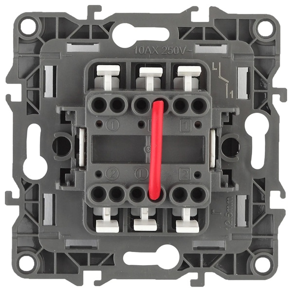 Выключатель выполнен из негорючего пластика без содержания галогенов с латунной контактной группой, Установка производится скрыто в подрозетники на винтах либо в распор на лапки. Самозажимные клеммы для быстрого подключения. Суппорт с пазами для выравнивания по горизонтали и вертикали при создание рабочего места из нескольких электроустановочных изделий.