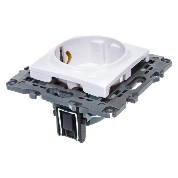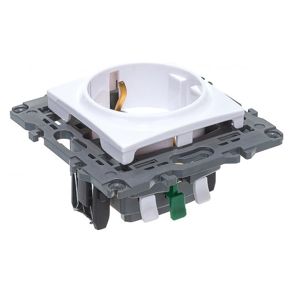 Электрическая бытовая розетка с заземляющим контактом, выполнена из негорючего пластика без содержания галогенов с латунной контактной группой, Установка производится скрыто в подрозетники на винтах либо в распор на лапки. Самозажимные клеммы для быстрого подключения. Суппорт с пазами для выравнивания по горизонтали и вертикали при создание рабочего места из нескольких электроустановочных изделий.