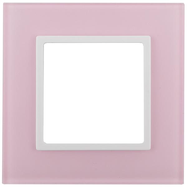 Декоративная стеклянная однопостовая рамка для механизмов Эра Elegance, цвет Розовый с белой вставкой. Б0034484