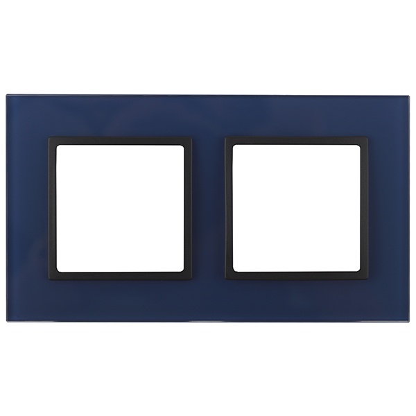 Декоративная стеклянная двухпостовая рамка для механизмов Эра Elegance, цвет Синий со вставкой антрацит. Б0034501