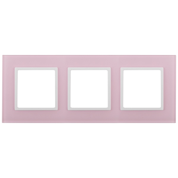 Декоративная стеклянная трехпостовая рамка для механизмов Эра Elegance, цвет Розовый с белой вставкой. Б0034520