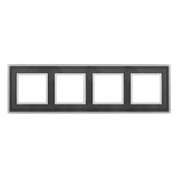 Декоративная стеклянная 4-постовая рамка для механизмов Эра Elegance, цвет Прозрачный с белой вставкой. Б0034523