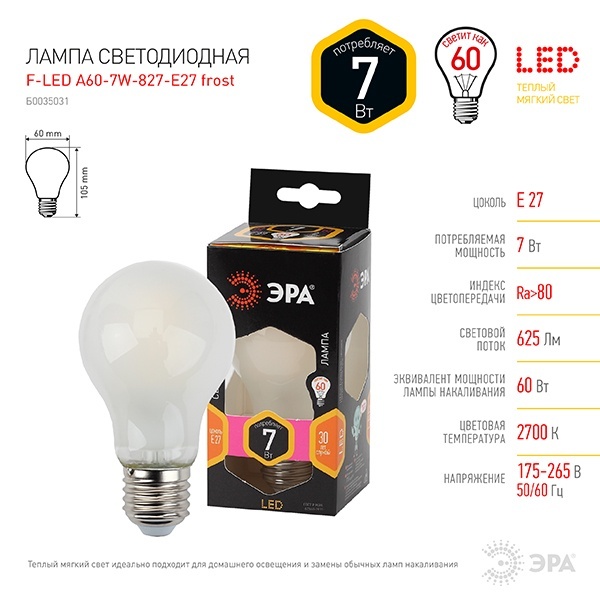 Лампа филаментная груша ЭРА F LED A60 обладает хорошей цветопередачей, что позволяет передавать цвета естественно и точно. Она имеет стандартный цоколь E27, что делает ее удобной в использовании в любом домашнем светильнике.