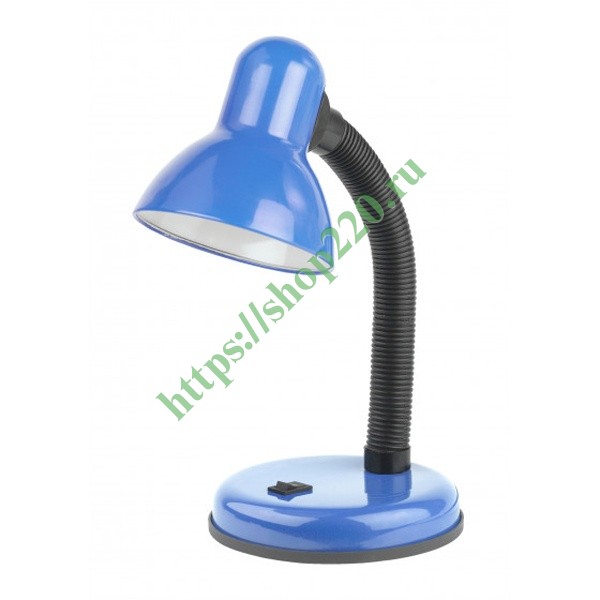 Синяя настольная лампа ЭРА N-211 в классическом исполнение, с цоколем Е27 под лампу ЛОН, КЛЛ, LED. Б0035056