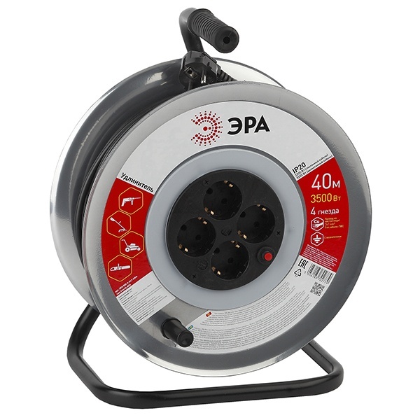 Удлинитель ЭРА с заземлением, на металлической катушке, длина провода ПВС 40 метров Б0035318