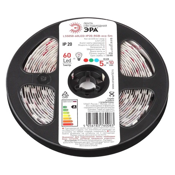 ЭРА Лента светодиодная LS5050-14,4-60-12-RGB-IP20-1 year-5m (50/2000)