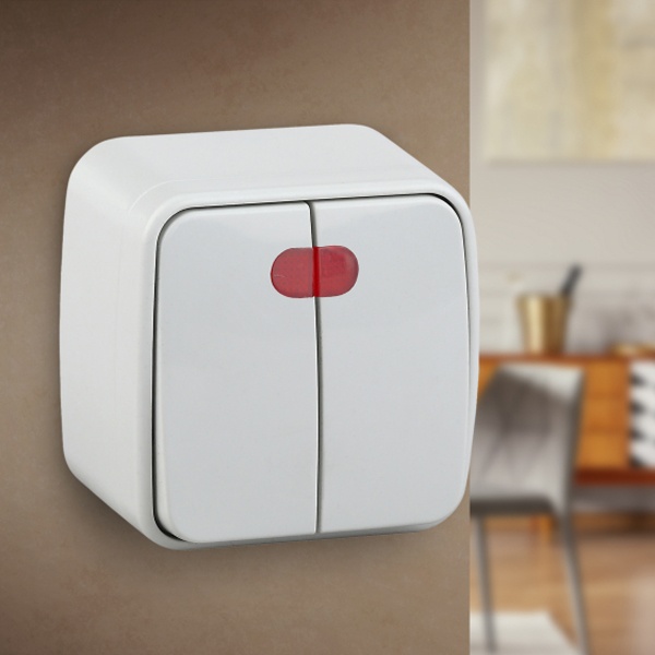 Настенный 2-клавишный электрический выключатель с индикацией белый Интро IP20 открытой установки Б0036096