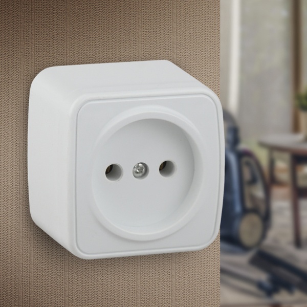 Электрическая внешняя белая розетка Интро одинарная силовая 16А электросети 220В IP20 открытой установки на стену Б0036097