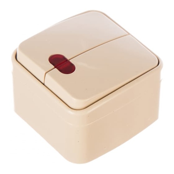 Настенный 2-клавишный электрический выключатель с индикацией бежевый Интро IP20 открытой установки Б0036123