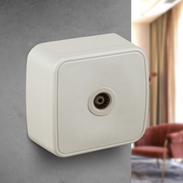 Внешняя бежевая ТВ-антенная розетка одинарная Интро под телевизор открытой установки на стену Б0036133