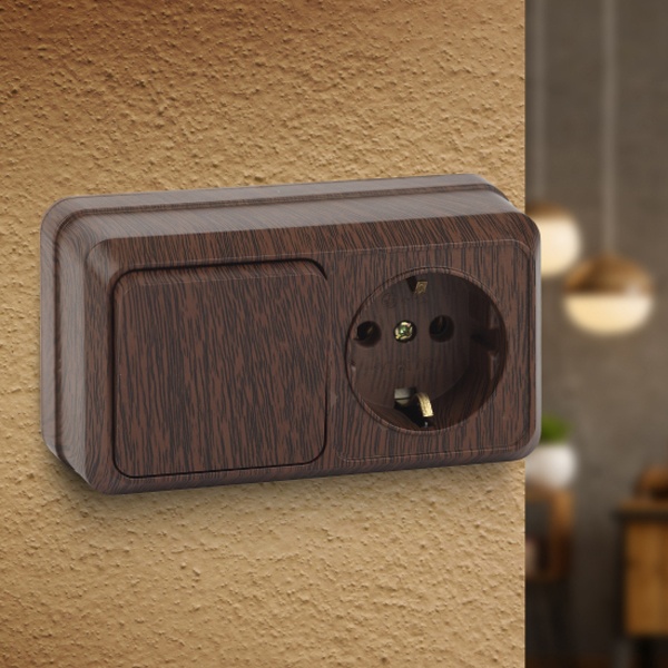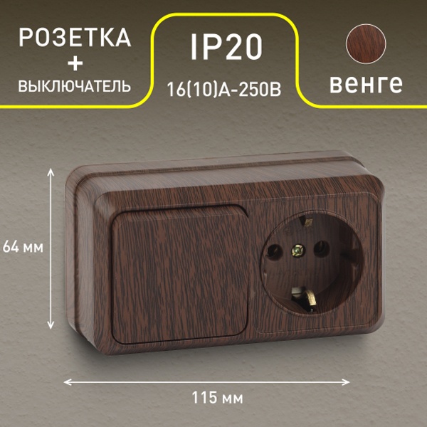 2-701-10 Intro Блок розетка+выкл. гориз. 10(16)А-250В, IP20, ОУ, Quadro, венге (6/120/1800)