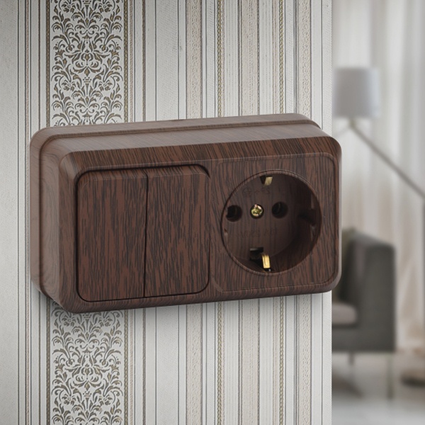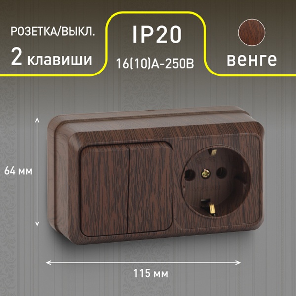 2-702-10 Intro Блок розетка+выкл. двойной гориз. 10(16)А-250В, IP20, ОУ, Quadro, венге (6/120/1440)