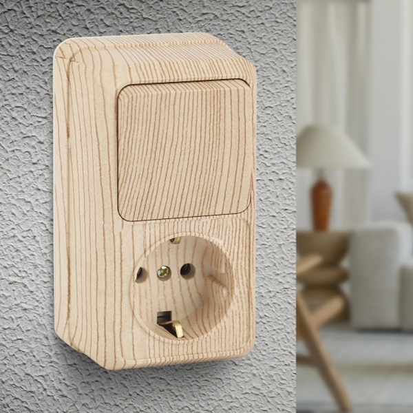 2-705-11 Intro Блок розетка+выкл. верт. 10(16)А-250В, IP20, ОУ, Quadro, сосна (6/120/1440)