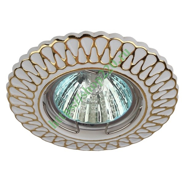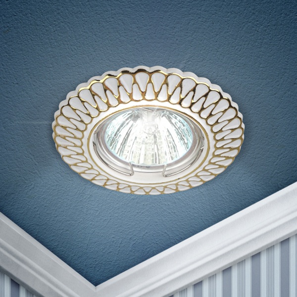 Точечный круглый светильник с узором скрытой установки с цоколем GU5.3 под лампу MR16 мощностью 50 Ватт, Эра ST4 цвета белый-золото. Б0036483