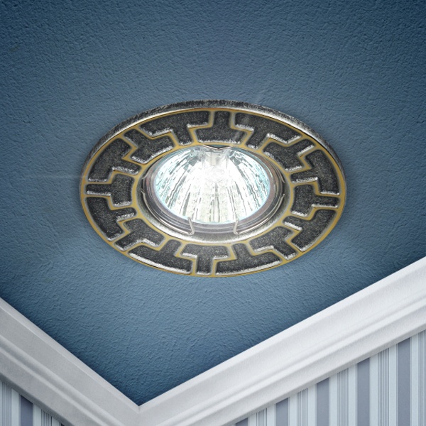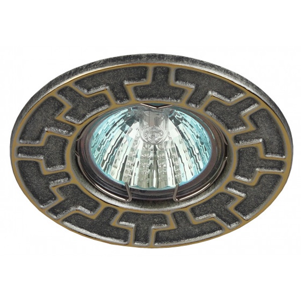 Точечный круглый светильник с узором скрытой установки с цоколем GU5.3 под лампу MR16 мощностью 50 Ватт, Эра ST5 цвета сатин серебро/золото. Б0036486