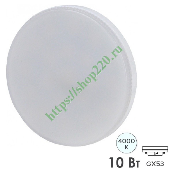 Бытовая светодиодная лампа ЭРА таблетка мощностью 10 Ватт, с цоколем GX53, нейтральный белый свет Б0036544
