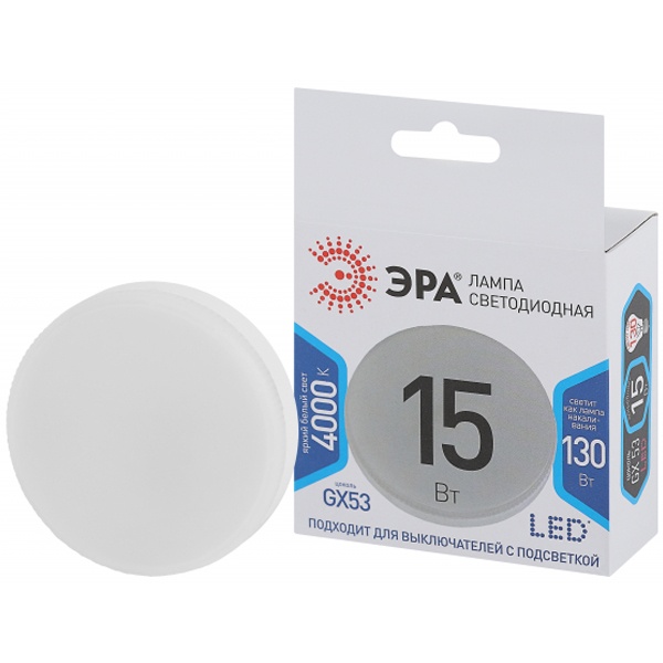 Лампа светодиодная таблетка ЭРА LED GX 15W 840 4000K 220V GX53 холодный свет Б0036552