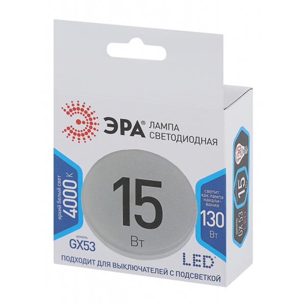 • Лампа светодиодная таблетка ЭРА LED GX 15W 840 4000K 220V GX53 холодный свет