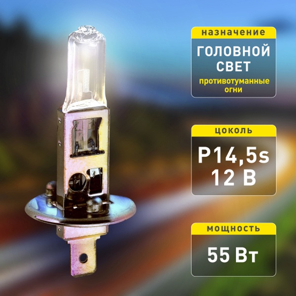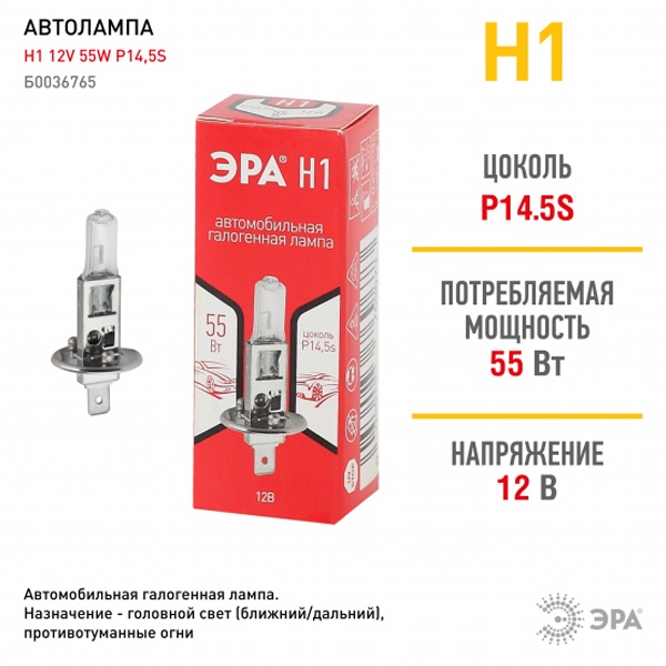 Современная галогенная лампа головного света торговой марки Эра служит для организации хорошей освещенности проезжей части перед автомобилем, что позволяет обеспечить безопасность движения в темное время суток и в условиях недостаточной видимости. Эта модель лампы Н1 с цоколем Р14,5s. Лампа имеет одну нить накала и ее номинальная мощность составляет 55 Ватт, она работает от сети автомобиля 12 Вольт. Световой поток прибора такого типа достигает 1550 Люменов. Преимуществами этой модели являются простота, потребление меньшего количества энергии по сравнению с классической лампой накаливания, легкая замена и компактные размеры, оптимальное соотношение цены и качества. Галогенную лампу категории Н1 ставят, в основном, в противотуманные фары, которые нужны для того, чтобы подсвечивать дорогу в непогоду: туман, дождь, снег. Устройство упаковано в фирменную картонную коробку. При транспортировке упакованную лампу следует предохранять от механических повреждений.