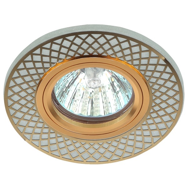 Встраиваемый декоративный светильник ЭРА DK LD42 WH/GD со светодиодной подсветкой, под лампу с цоколем GU5,3, цвет корпуса белый/золото Б0037382