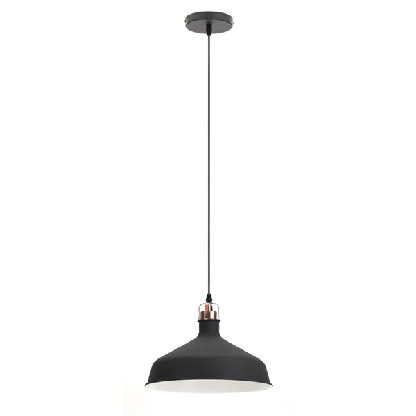 • Светильник подвесной ЭРА PL2 BK/RC металл, E27, d300мм, шагрень черный/медь