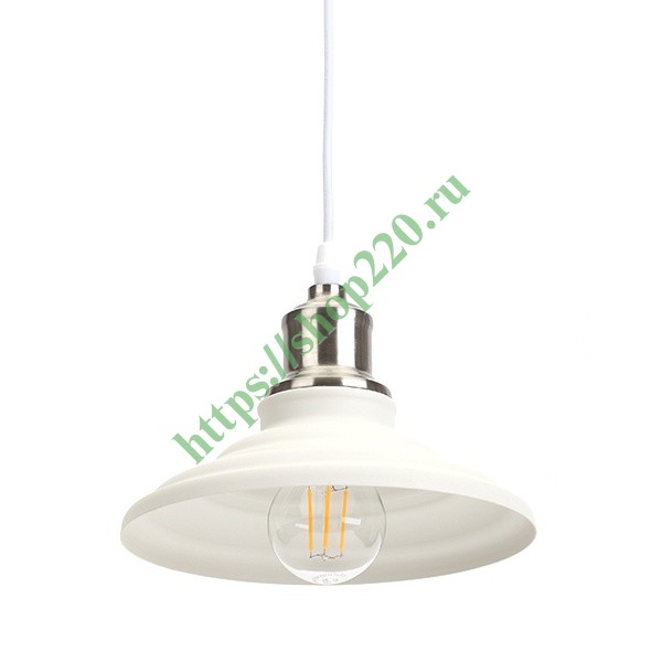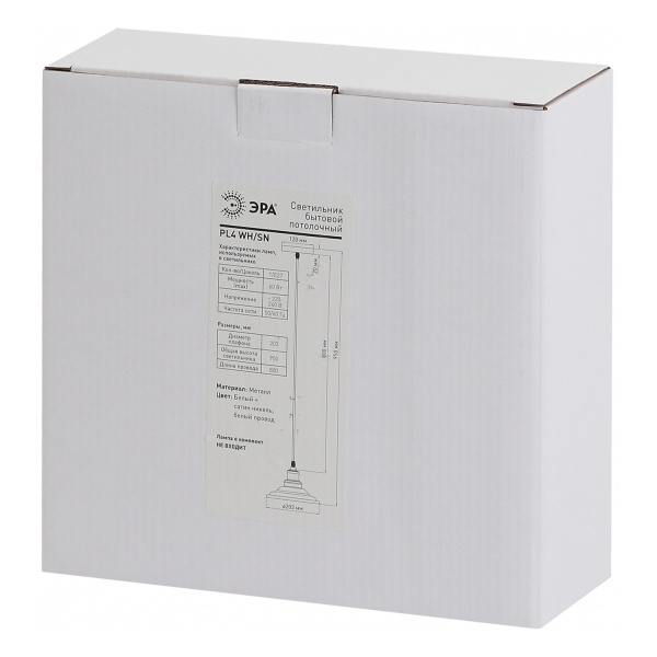 • Светильник подвесной ЭРА PL4 WH/SN металл, E27, d203мм, шагрень белый/сатин никель
