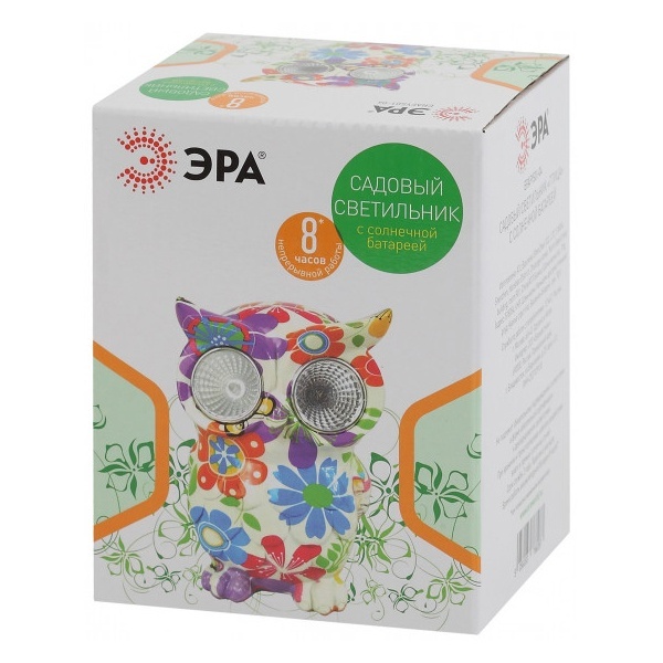 Наземный садовый светильник на солнечной батарее торгового знака ERA выполнен в виде фигурки птицы с горящими глазами. Небольшие размеры позволяют разместить фигурку в саду, изящно подсветить цветы или вход на террасу. Также она может служить украшением в доме. Благодаря встроенному фотоэлементу, устройство автоматически заряжается под солнечным светом в дневное время, индикатор включается в темное время суток и выключается днем. С наступлением темноты глаза миниатюрной птицы загораются. Участок вокруг него освещается ярким белым светом, исходящим из глаз птицы. Светильник может работать непрерывно в течение 8 часов при полной зарядке аккумулятора. Использование рефлектора в конструкции лампы обеспечивает высокую яркость свечения. Фигурка высотой 15 см выполнена из искусственного камня полистоун, имитирующего керамику. LED светильник рассчитан для применения на улице при любых погодных условиях и имеет степень защиты от влаги и пыли – IP44. В качестве источника света используются светодиодные лампы, которые поставляются в комплекте. Вес изделия 0,42 кг. Гарантийный срок устройства – 6 месяцев. Срок службы – 2 года.