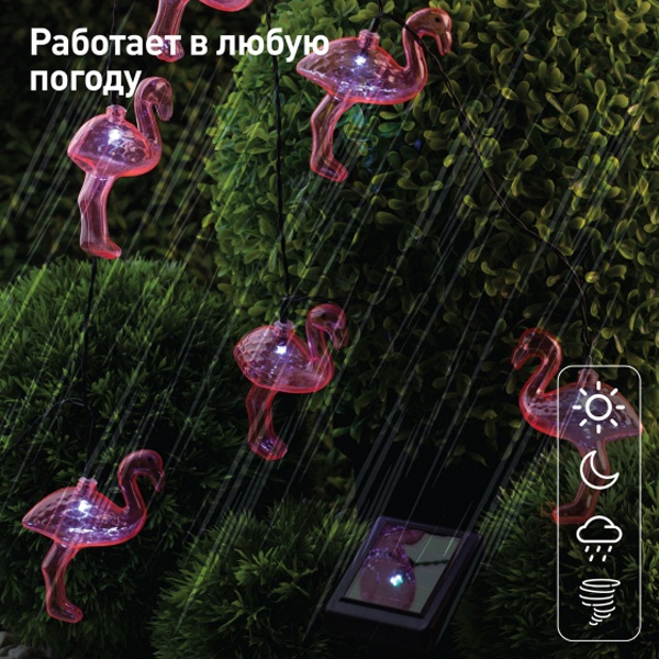 Садово-дачный LED светильник на солнечной батарее с гирляндой из 10 фламинго Б0038508