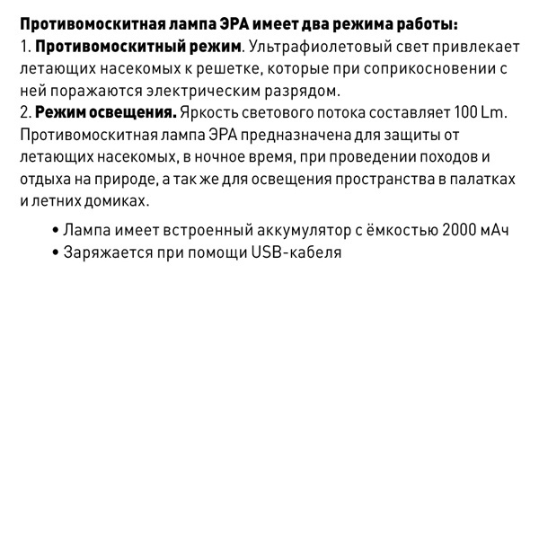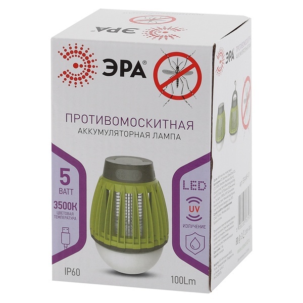 Антимоскитная, ультрафиолетовая, аккумуляторная лампа ЭРА, два типа светодиодов Б0038598