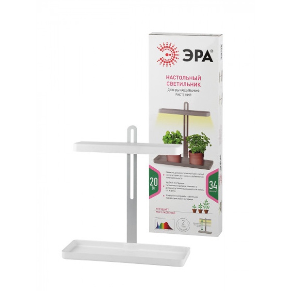 Настольный светильник для грунта ЭРА, для выращивания растений, мощностью 20 Ватт, белый цвет Б0039034