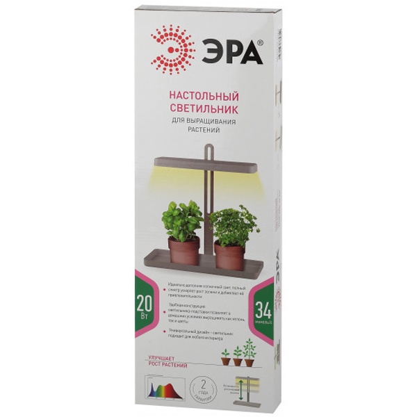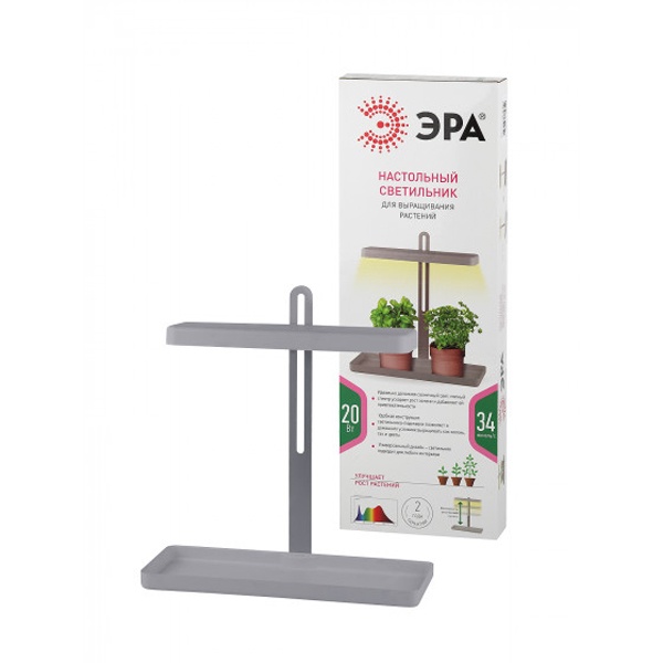 Настольный светильник для грунта ЭРА, для выращивания растений, мощностью 20 Ватт, серый цвет Б0039035