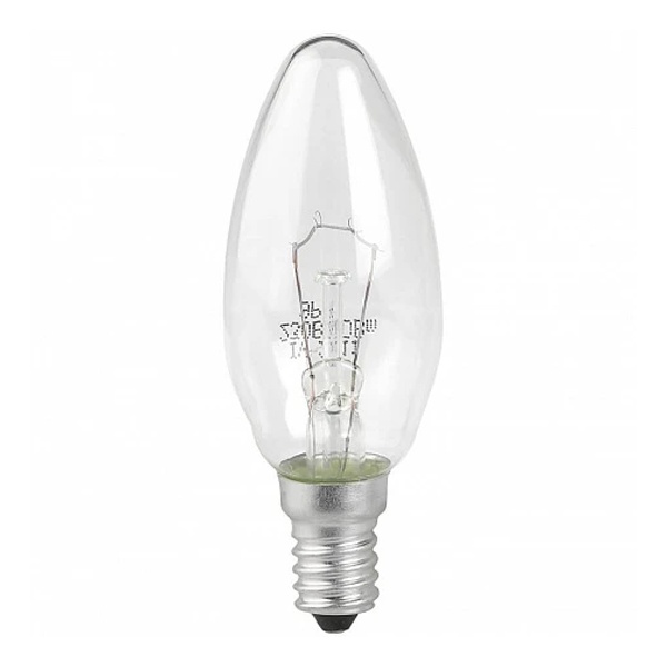 Лампа накаливания вольфрамовая для бытового и аналогичного общего освещения. Лампа с колбой в виде свечи используется для декоративного оформления светильника, придания ему законченного и совершенного вида. Она красиво смотрится, создавая эффект настоящей зажженной свечи, что привносит в интерьер комнаты более уютный, успокаивающий и «теплый» вид. Прозрачная колба лампы создана специально для эффектов абсолютно чистого, искрящегося света.