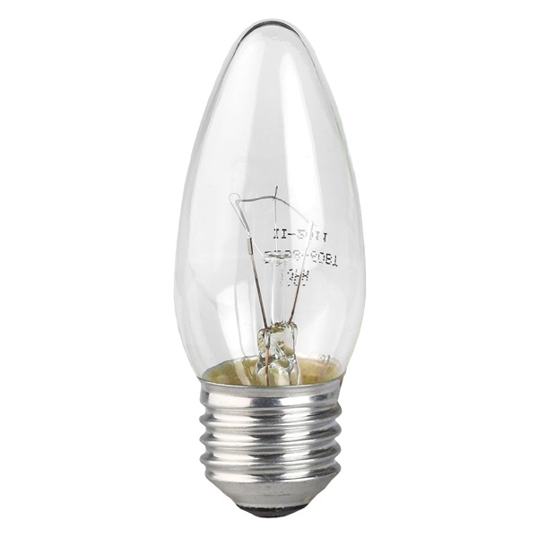 Лампа накаливания вольфрамовая для бытового и аналогичного общего освещения. Лампа с колбой в виде свечи используется для декоративного оформления светильника, придания ему законченного и совершенного вида. Она красиво смотрится, создавая эффект настоящей зажженной свечи, что привносит в интерьер комнаты более уютный, успокаивающий и «теплый» вид. Прозрачная колба лампы создана специально для эффектов абсолютно чистого, искрящегося света.