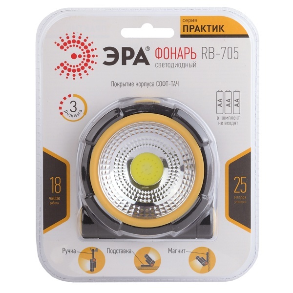 RB-705 Фонарь ЭРА Фонарь ЭРА Практик прожектор (4Вт. COB, софт-тач, магнит, 3xAA, бл (10/40/480)