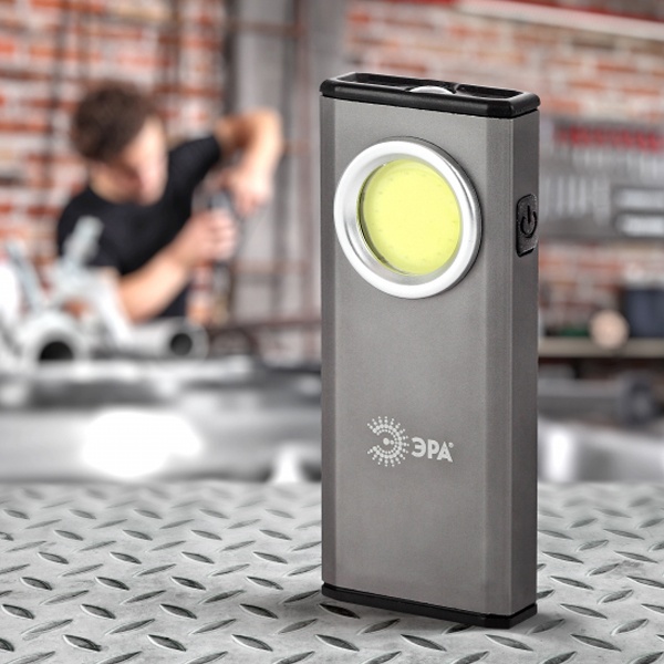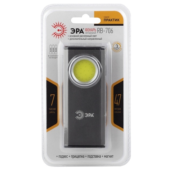 Светодиодный фонарь в прочном металлическом корпусе. Анодированное покрытие устойчиво к царапинам и механическим повреждениям. Относится к серии ЭРА Практик - мощные яркие фонари для профессиональных работ: строительство, монтаж, ремонт, обслуживание. Особо удобен в использовании за счёт сразу 4 вариантов крепления - подвес, подставка, прищепка, магнит. Помимо основного заливающего света (LED-плата с COB-диодами премиум-класса) имеет дополнительный светодиод с направленным лучом. Можно включать в эконом-режиме низкой яркости. При высокой мощности и дальности освещения (47 метров) одного комплекта мизинчиковых батареек (3 х ААА) хватает на 7 часов непрерывной работы. По своему дизайну напоминает классический офицерский фонарь, ставший легендой в советское время и не потерявший популярность.