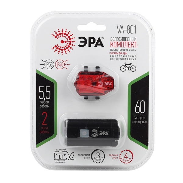 Комплект из двух светодиодных, аккумуляторных велофонарей (передний, сигнальный) ЭРА VA-801 Б0039624