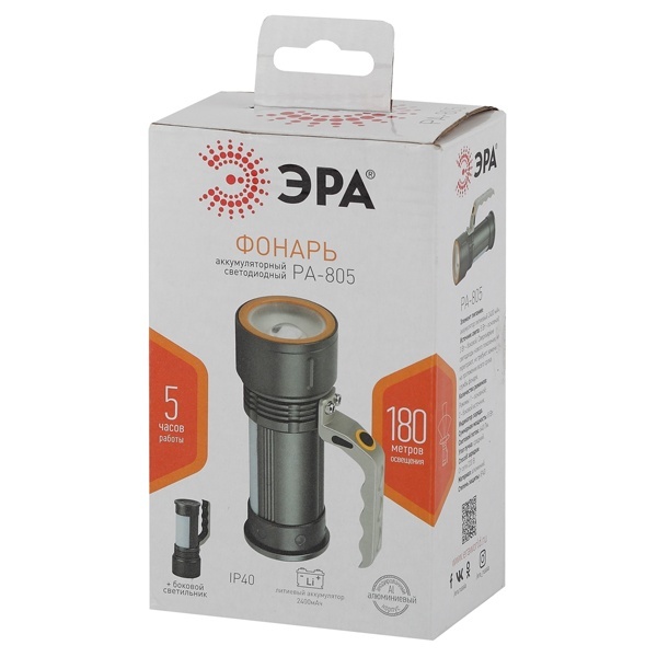 Фонарь прожекторый ЭРА РА-805, литиевый аккумулятор емкостью 2400 мАч, дальность луча 180 метров Б0039629