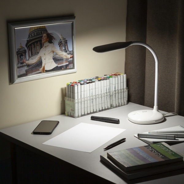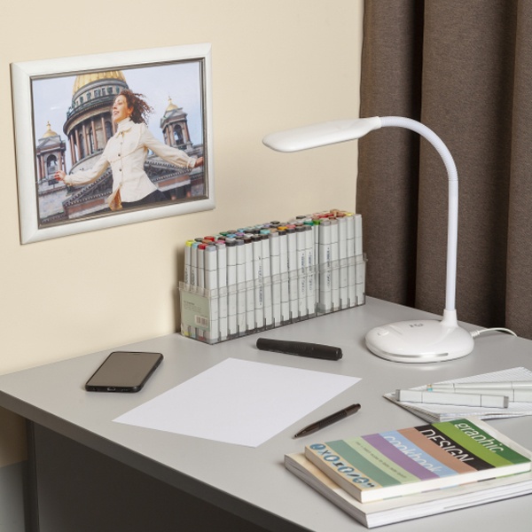 Настольный LED светильник Эра белого цвета с гибкой стойкой, мощностью 8 Ватт и нейтральным светом. Б0041082